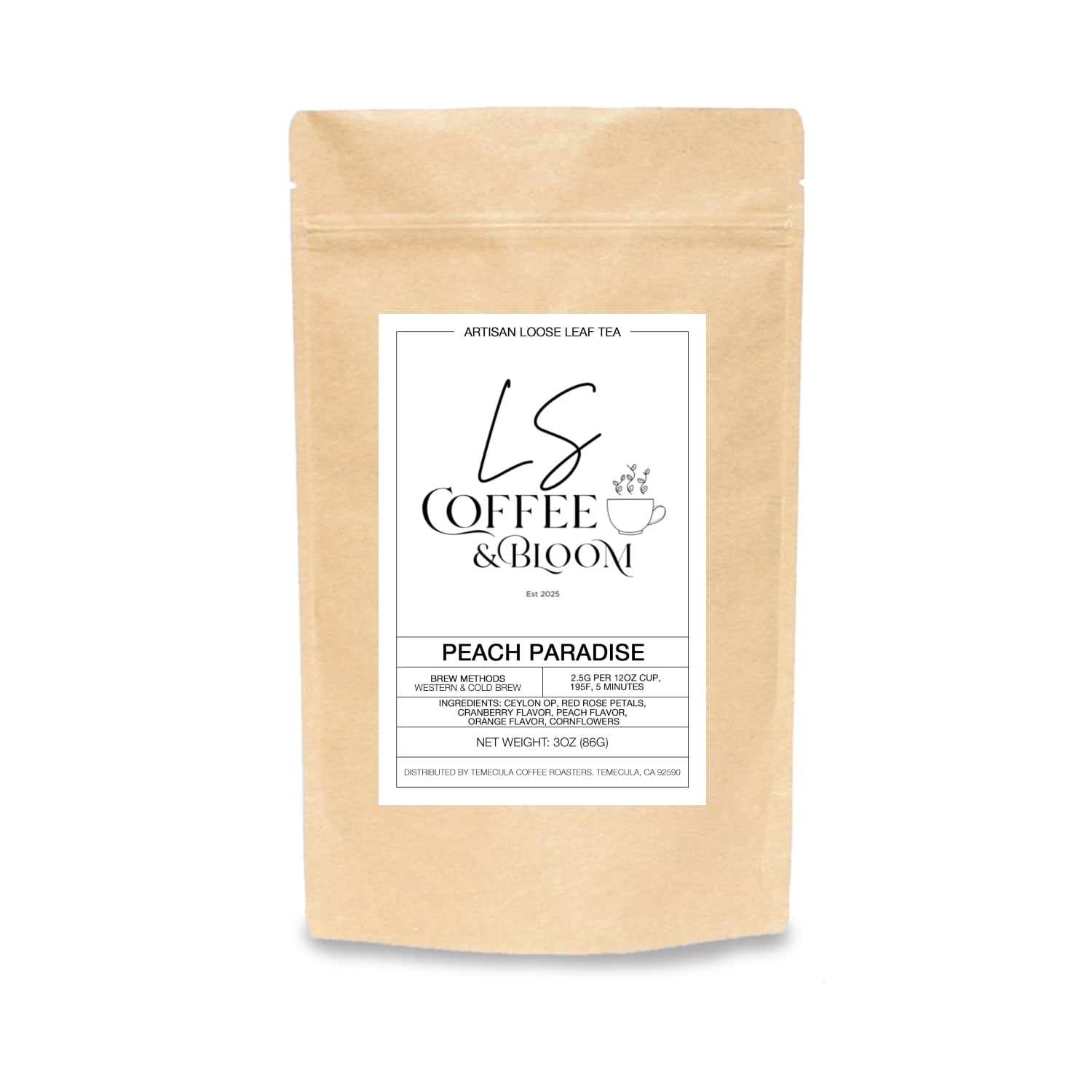 This herbal blend is fruity, smooth, aromatic, and sweet. Fruity peach, sour cranberry and smooth notes of rose, creates paradise in a cup. A fantastic and refreshing cup both hot and cold.